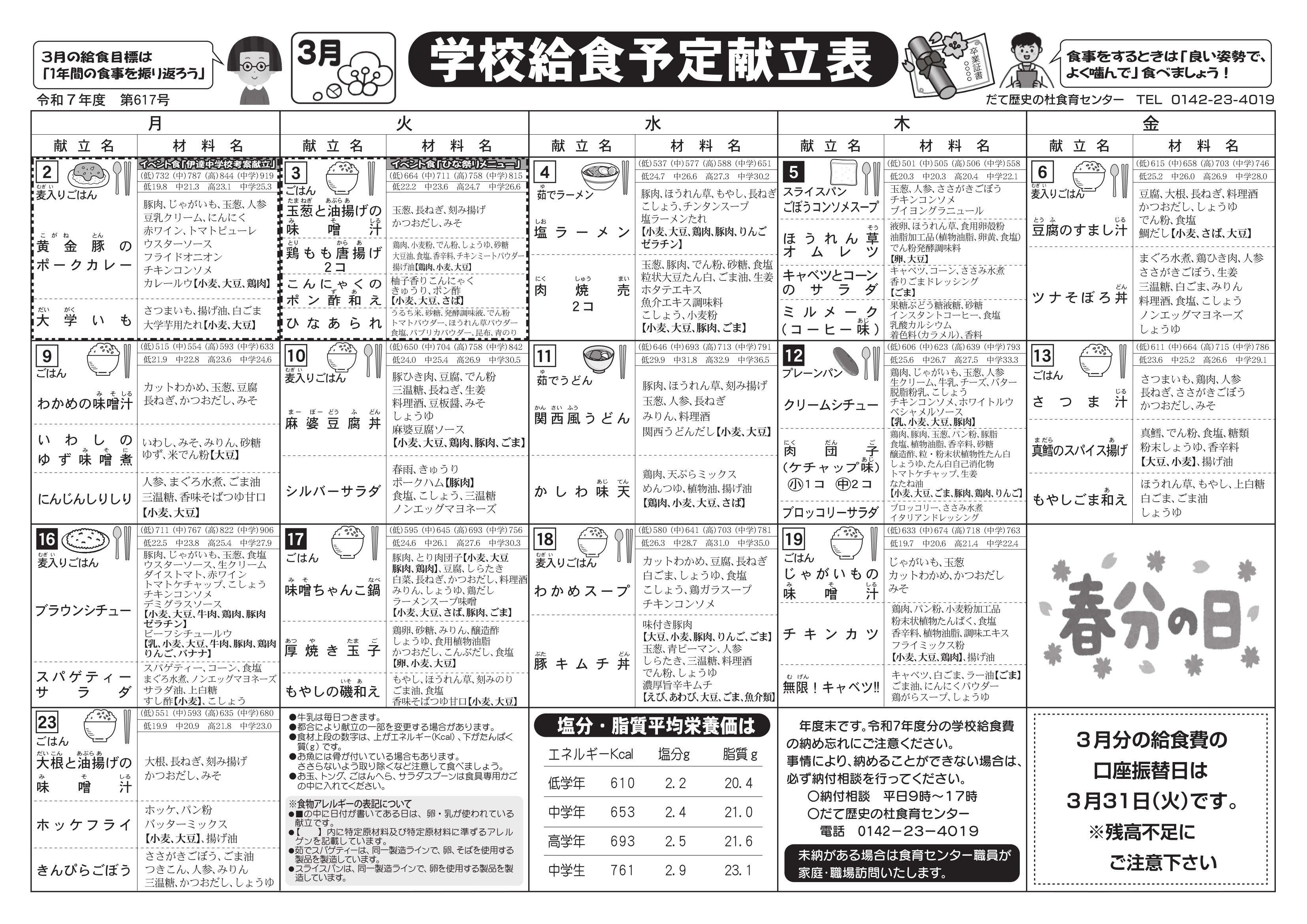 令和7年3月献立表